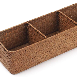 סל אחסון sagrass 3 חלקים ארוגים סלים מדף ארוגים עם תא (טבעי, 14.6 אינץ x 4.7 אינץ 'x 3.1 אינץ')