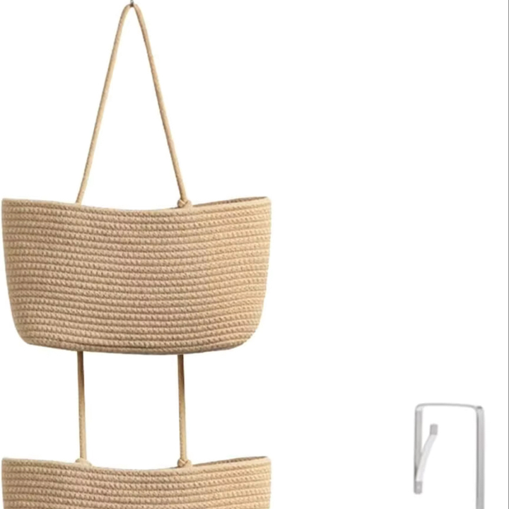 מעל הדלת תליית סל, 3-שכבות ארוג כותנה חבלים קיר אחסון רכוב עיצוב תיק מתלה סל משתלה סל